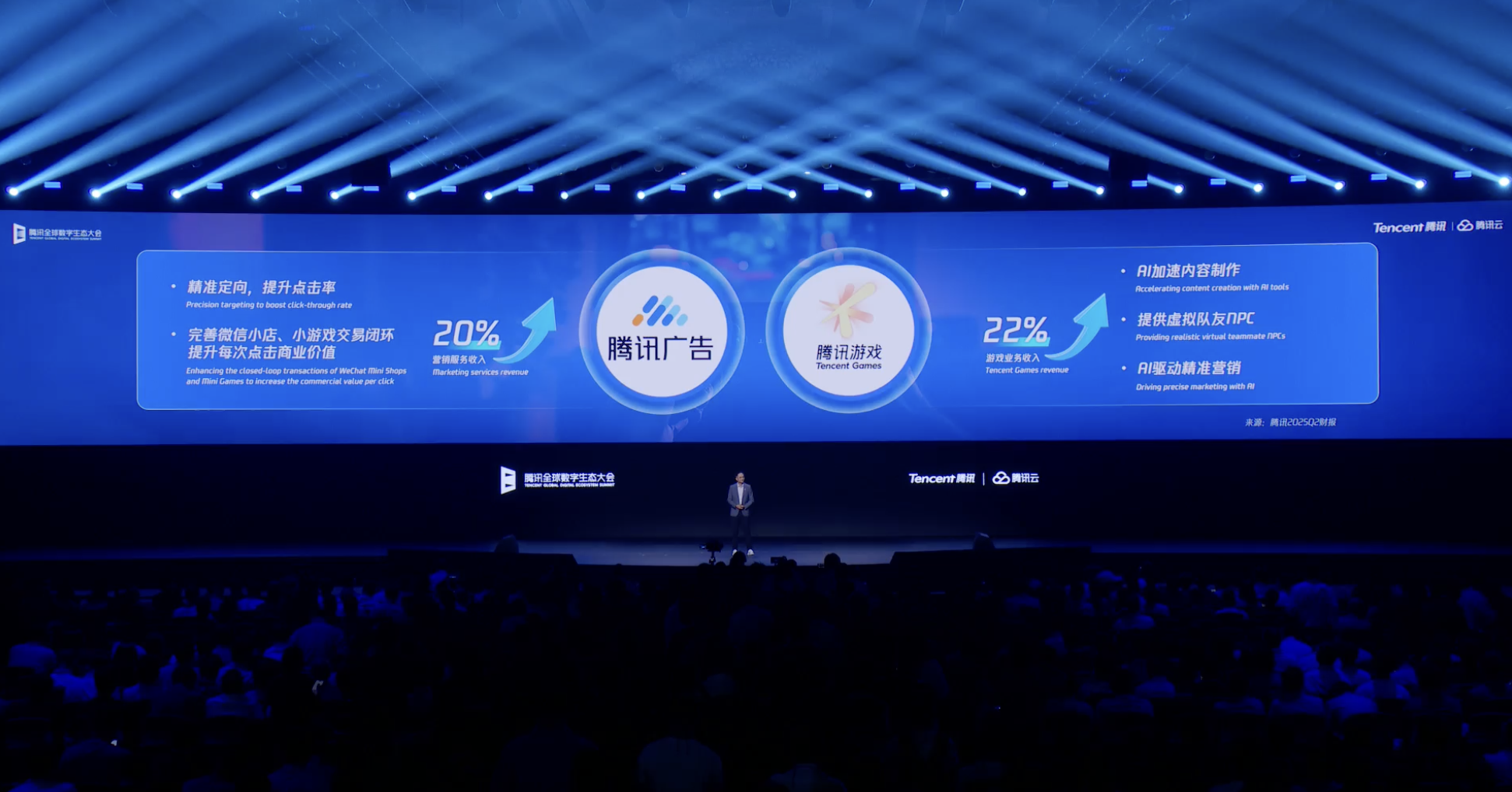 智能化引擎也正在全面部署。在广告业务上,大模型已用于创作、推荐和投放策略优化,带动今年二季度营销服务收入增长了20%;在游戏业务中,AI支持虚拟队友、NPC生成等方式提升用户沉浸感,带动游戏收入实现双位数增长。