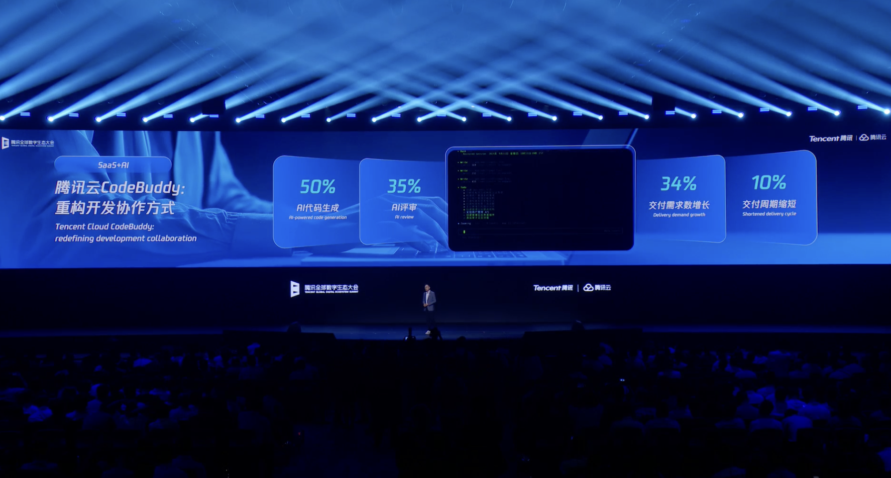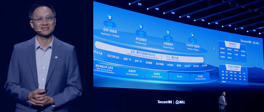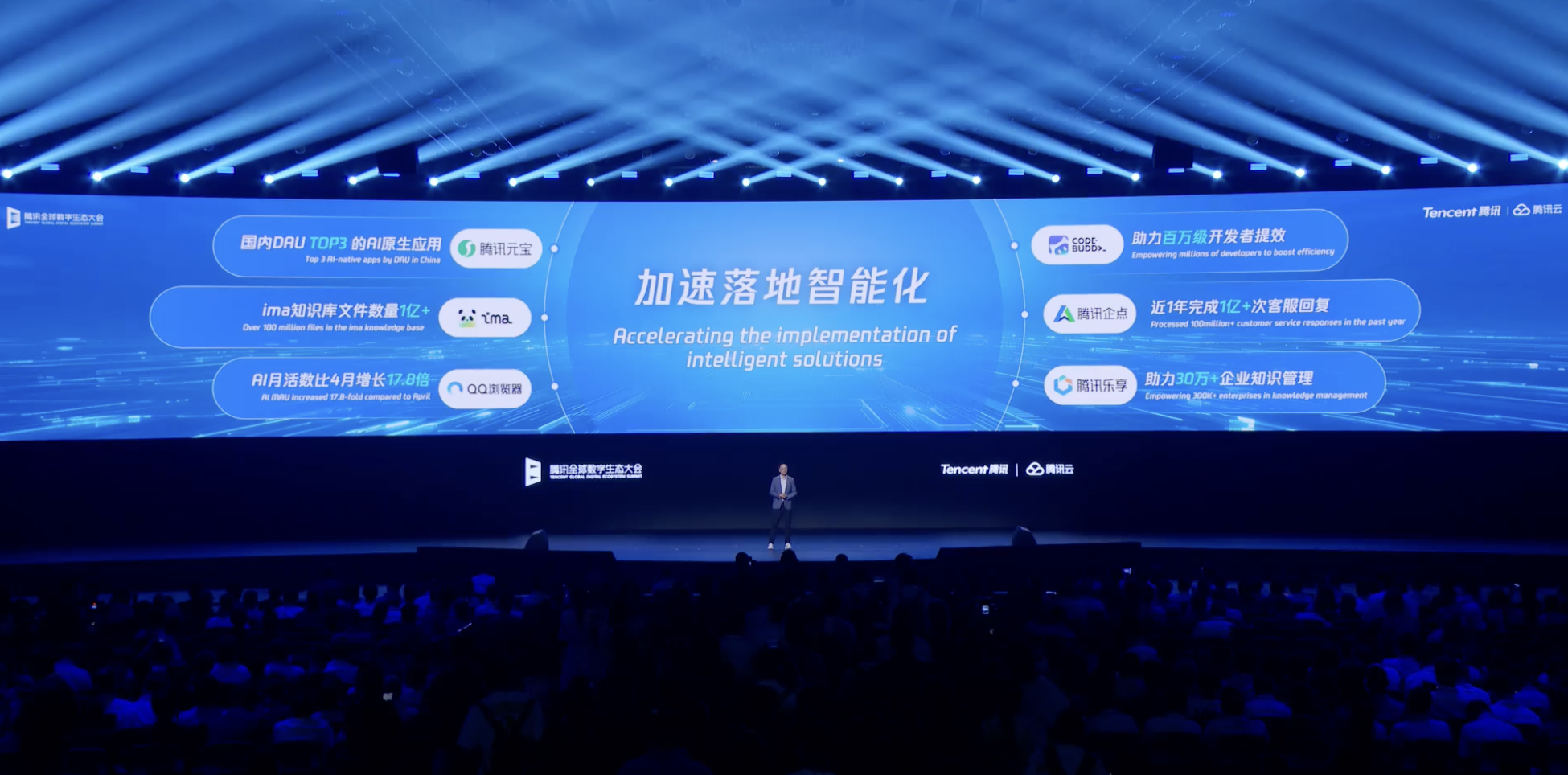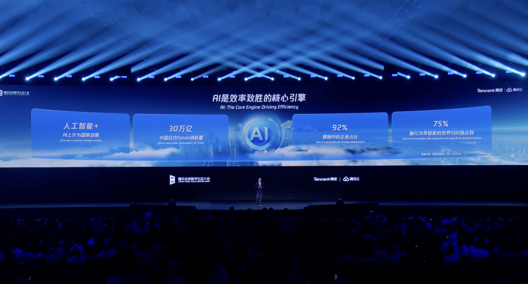 这不仅是一场产品秀,更是一次战略官宣。腾讯集团高级执行副总裁、云与智慧产业事业群CEO汤道生将腾讯云的发展凝练为两大引擎:向智能化要产业效率,向全球化要收入规模。这一“双引擎”思路,成为腾讯云对未来增长的核心回答。
