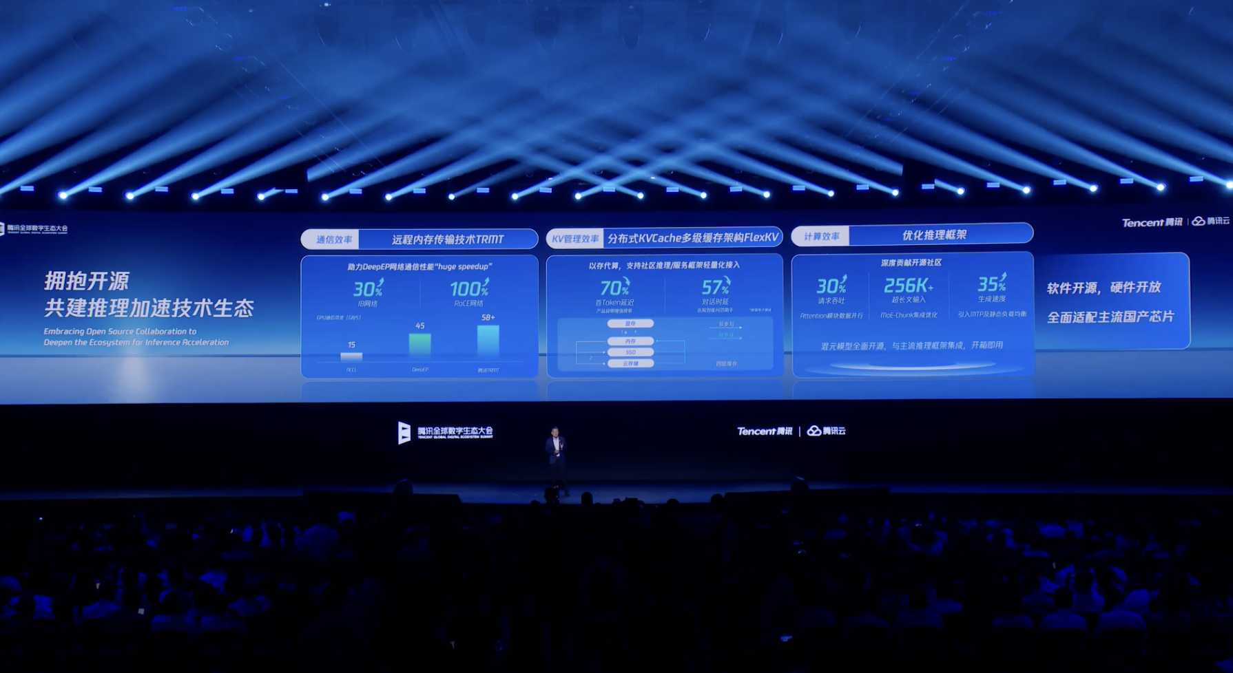 AI在推理效率、计算效率和通讯效率方面提出了新挑战。面向挑战,腾讯云推出了远程内存传输技术TRMT、分布式KVCache多级缓存架构FlexKV、优化推理框架等多项创新技术,以此推动通信效率、KV管理效率、计算效率大幅升级。