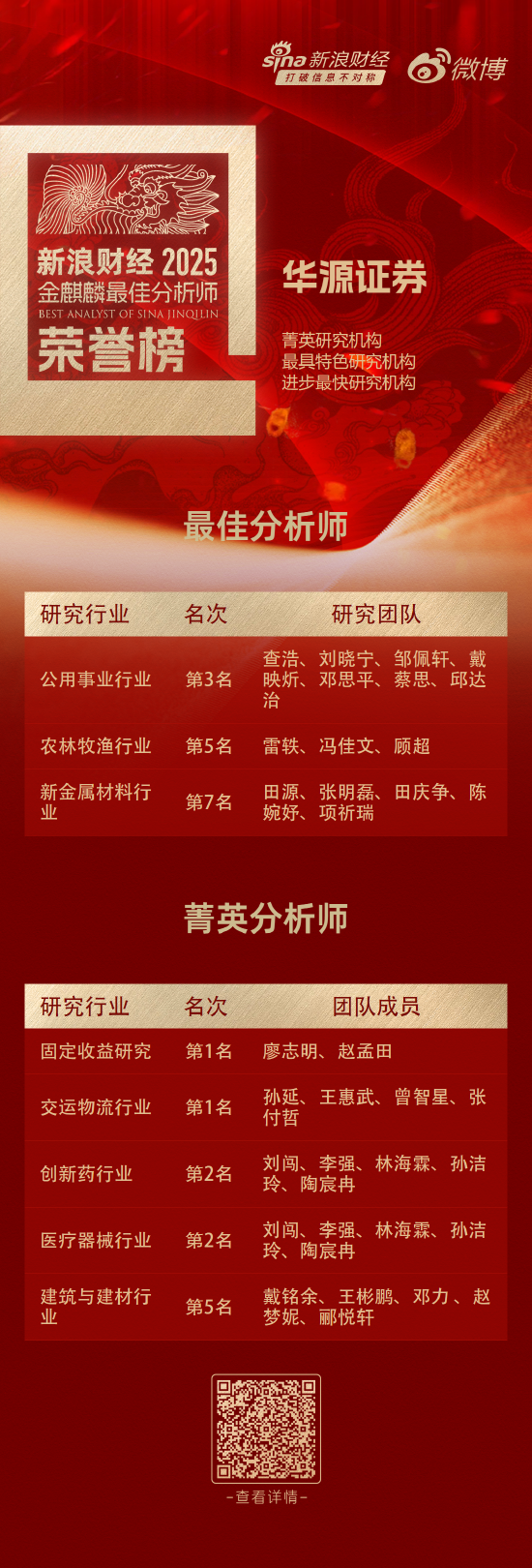 最佳分析师荣誉榜,华源证券荣获3个领域研究大奖,